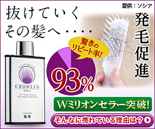 「薬用グローリン・ギガ」発毛促進剤 販売実績260万本!リピート率93%!